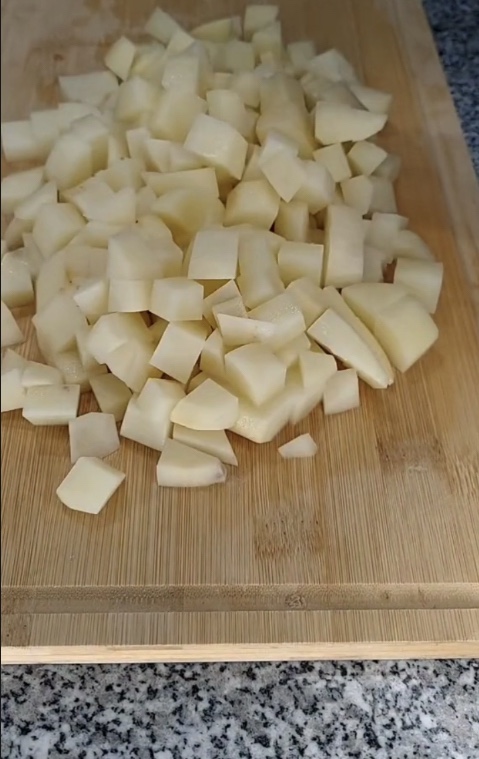 Chop the potatoes when they are soft; this saves time on the peeling and chopping.