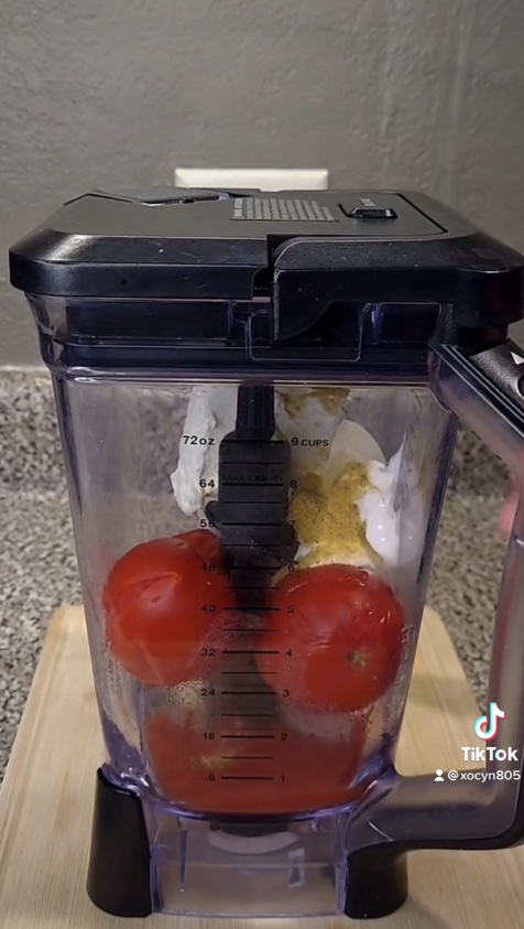 - Then add the garlic cloves , onion, tomato bouillon, black pepper, cream cheese and milk to the blender.