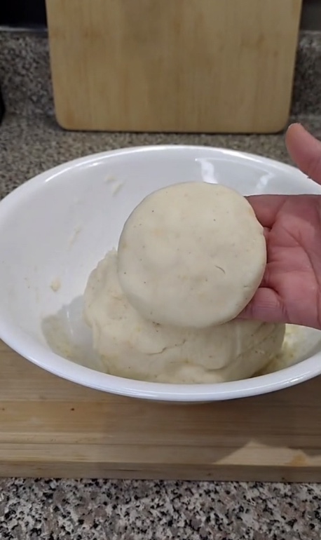 Make sure there are no lumps and form it into a ball you want the consistency to be a bit softer than play dough. It can dry out very easily, so make sure it is nice and moist. Consistency is key to a moist Arepa.