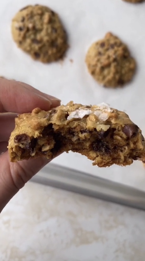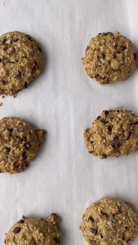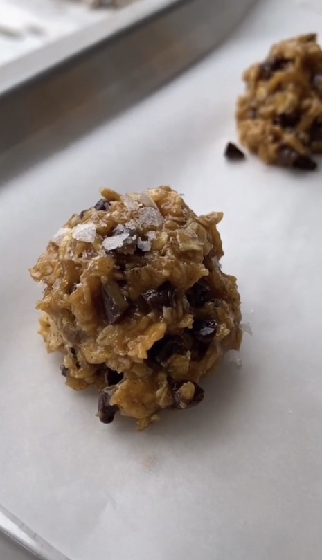 Scoop onto a lined baking sheet and add flakey sea salt , bake at 350 for 18 minutes