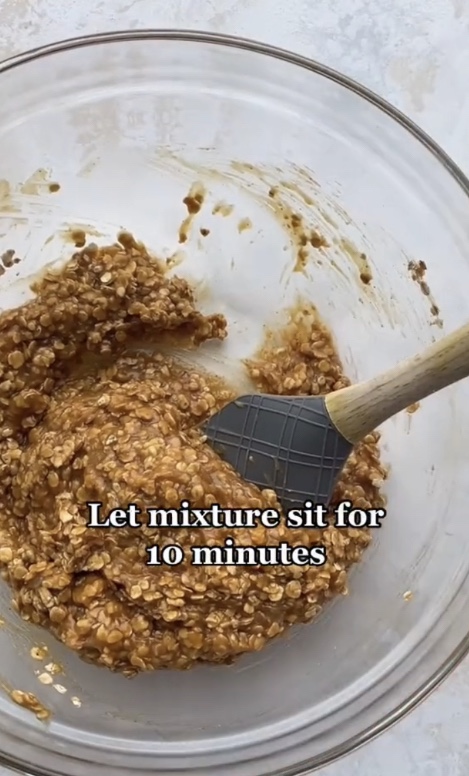 Whisk together and let for 10 minutes and fold in 1/2 C chocolate chips