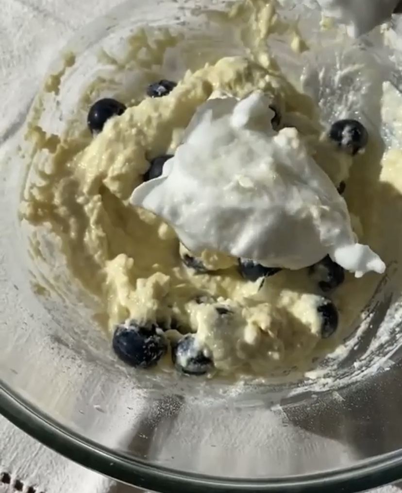 - Then, in a separate bowl, crack 2 eggs and whisk. Add milk, ricotta cheese, lemon juice, lemon zest, honey, and oil to the bowl and whisk to combine.