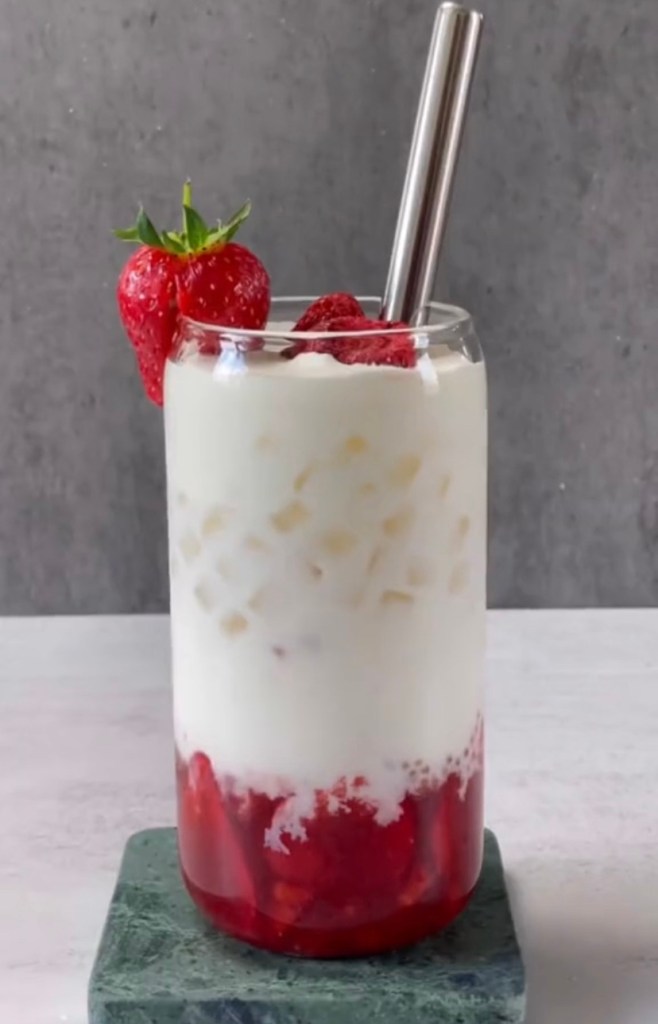 The syrup can be made in bulk and last in the fridge for three weeks. You can also store the Korean Fresh Strawberry Milk premade in a jar and just shake it up when you are ready to drink!