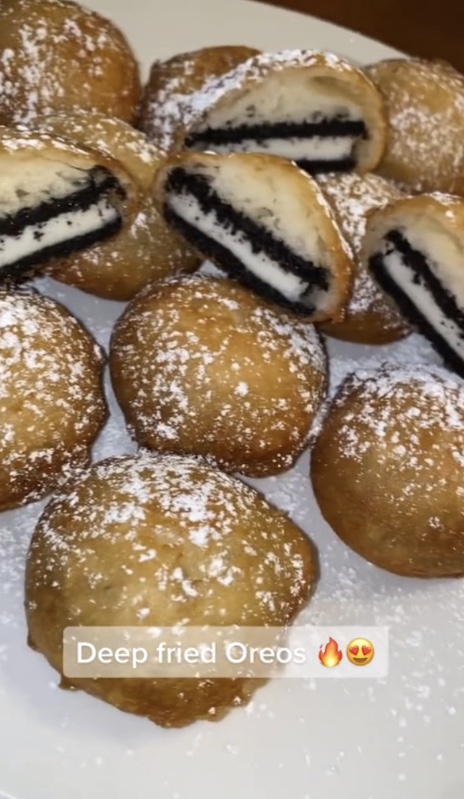 Dip your Oreos into the batter, then place them in hot oil to cook. Add a garnish of powdered sugar, then you’ll be ready to enjoy this sweet treat!